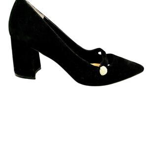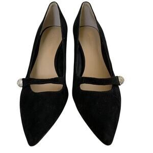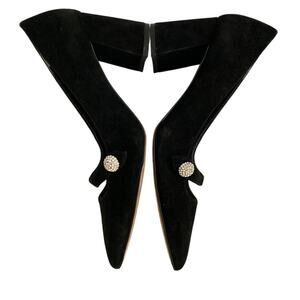 Ann Taylor “Essie” Maryjane Rhinestone Black Suede Block Heel Size 7.5