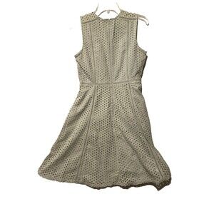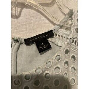 This Ann Taylor dress in a beautiful mint green color is perfect for any occasion. The eyelet fit and flare style dress is made of comfortable cotton material and features a crew neckline and a sleeveless design. It has a zip closure and is a short length, making it perfect for summer or spring. The dress is size 4P and is a great fit for petites.