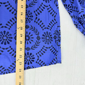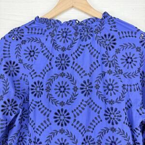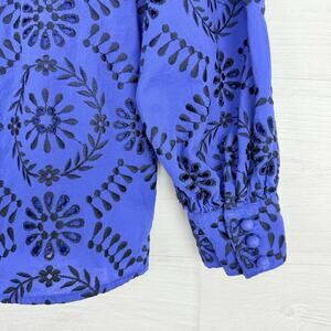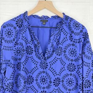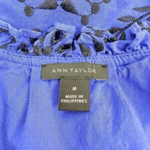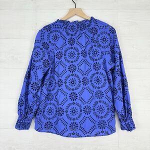 Ann Taylor Eyelet Top Blouse Size Medium Floral Blue Popover Long Sleeve Preppy