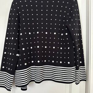 Chic Ann Taylor knit cardigan with a classic black and white pattern, but elevated!