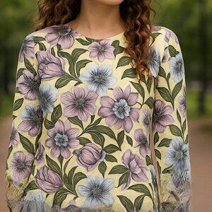 Ann Taylor Factory 100% Cotton lightweight knit sweater ladies med Floral Bloom