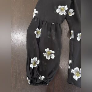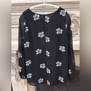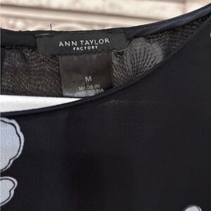 Ann Taylor Factory Black Blouse White Floral Design Size Medium