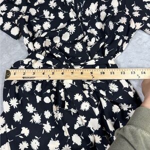Ann Taylor Factory Black Cream Floral A line Short Sleeve Surplice Dress