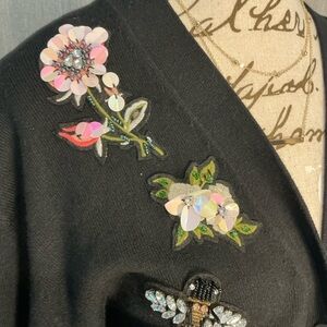 Ann Taylor Factory Black Floral Embroidered Women's Sweater Size Small