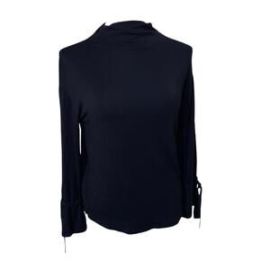 Ann Taylor Factory Black Funnel Mock Neck Tie Sleeve Pullover Sweater Size XS