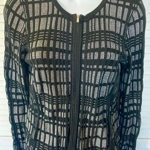 Super Cute full zipper black & white window pane style, sweater/cardigan
