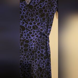 Ann Taylor Factory Black Wrap Dress with Blue Circle Pattern