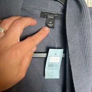 Ann Taylor Factory Blue Open Front Faux Suede Panel Cardigan Sz M Petite NWT
