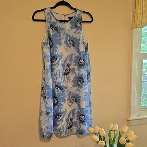 Ann Taylor Factory Blue and White Scoop Neck Sundress. It Is Fully Lined P2P 18
