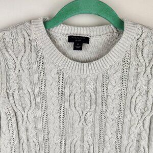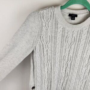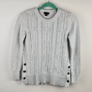 Ann Taylor Factory Cable Knit Crewneck Sweater w/ Side Slit Buttons sz MP