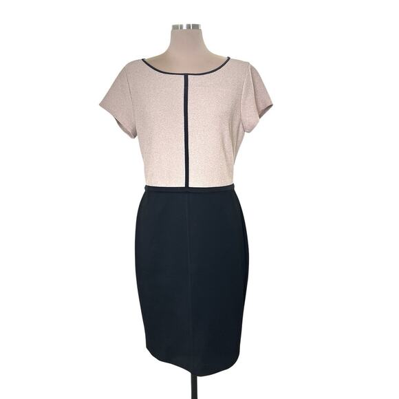 Ann Taylor Factory Dress Size 12 Short Sleeve Knee Length Black Cream Casual