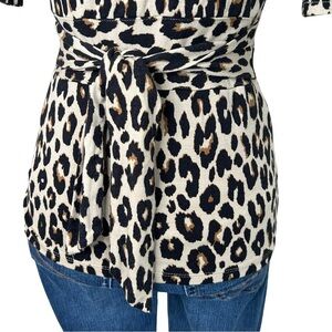 Faux wrap leopard print belted top from Ann Taylor Factory in black and tan sz XS