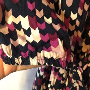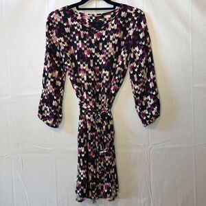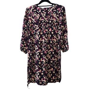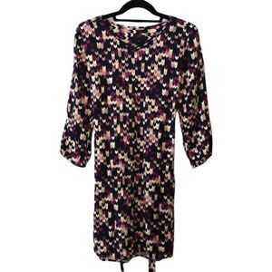 Ann Taylor factory graphic dress in small petite, good work dress, scoop neck, long sleeves, elasticized cuffs
