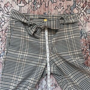 Ann Taylor Factory Houndstooth Plaid Checkered Pants Tie Belt Black White Tan 8