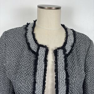 Ann Taylor Factory Jacket Womens L Black White Tweed Open Blazer Office Preppy