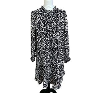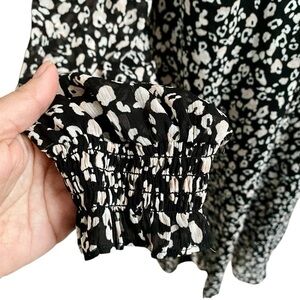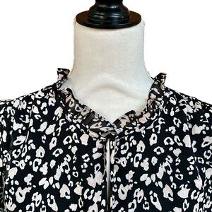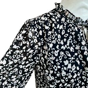 Ann Taylor Factory Leopard Animal Print Ruffle Shift Dress Medium Long Sleeve