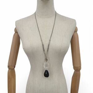 Ann Taylor Factory Long Necklace Dark Blue Goldstone Pendant Boho Statement