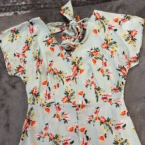 Ann Taylor Factory Mint Green Floral Midi Dress 6 Short Sleeve Cottage