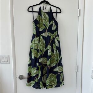 Ann Taylor Factory Navy and Green Leaf Midi Dress