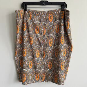 Ann Taylor Factory Orange Paisley Medallion Straight Skirt Career 18 NWT