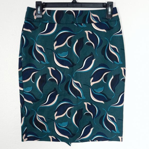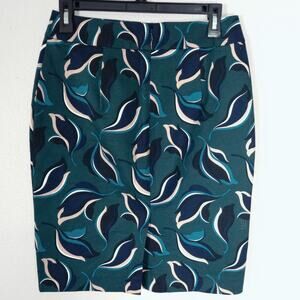 Ann Taylor Factory Pencil Skirt Blue Bold Print Size 0 Office Chic