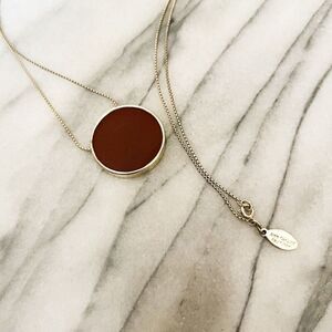 Ann Taylor Factory Pendant Necklace Brown Round Gold Toned Metal Chain