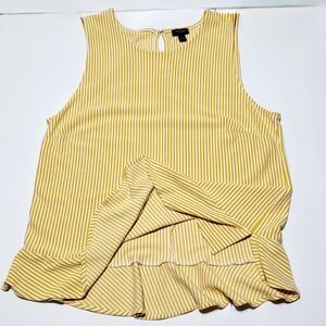 Ann Taylor Factory Peplum Yellow & White Striped Sleeveless Top (XL)