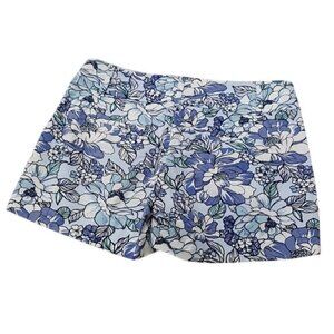 Ann Taylor Factory Petite Womens Signature Blue White Floral Shorts Size 4P
