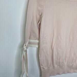 Pink crew neck 100% cotton knit sweater. Short sleeves with tie cuffs.