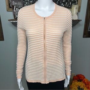 Ann Taylor Factory Peachy Pink White Bubble Texture Zip Front Cardigan Jacket Size Sm
