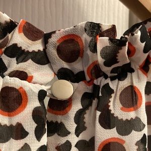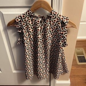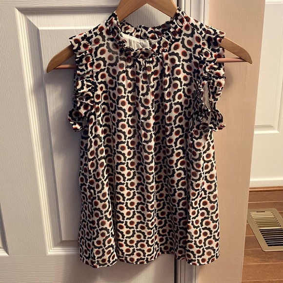 Size XXSP. Petite sleeveless top with ruffled A-line neck and shoulders. Nice floral 🌺 or geometric 🔴🔺🟣 pattern, depending on how you look at it! EUC, no noted flaws.