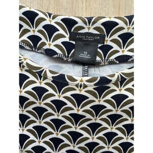 The Ann Taylor Factory Sheath Midi Dress in women's size 10 is a stylish and versatile piece suitable for various occasions. This cream and blue dress features a solid pattern, short sleeves, boat neckline, and a flattering sheath silhouette. Made from a blend of polyester and spandex, the dress is machine washable and offers a comfortable stretch fit. Perfect for city or classic themes, this dress can be worn in all seasons and is a great addition to any wardrobe for those looking for a timeless and elegant look.