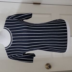 Ann Taylor Factory Size XS Navy Blue White Striped Short Sleeve Sweater, EUC
