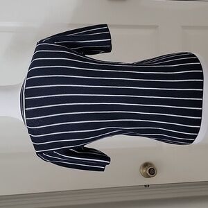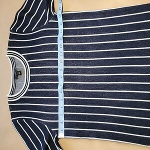 Ann Taylor Factory Size XS Navy Blue White Striped Short Sleeve Sweater, EUC. Great for work or casual! Please refer to measurements in photos to ensure proper fit.