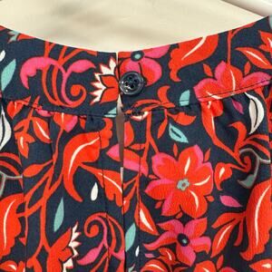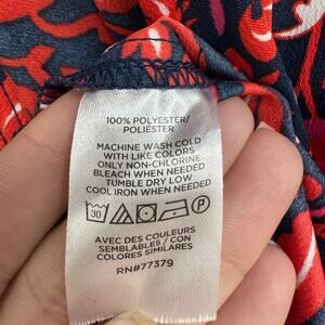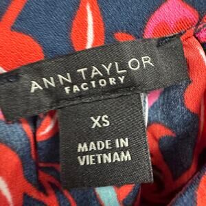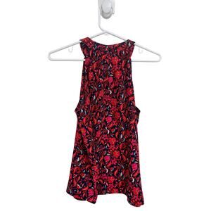 Ann Taylor Factory Sleeveless High Neck Navy Red Floral Print Tank Top Womens XS