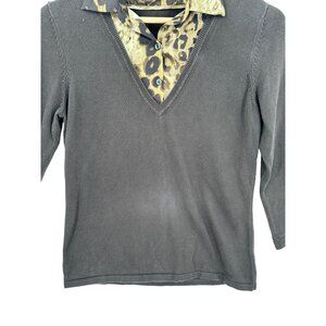 This Ann Taylor Factory Sweater is a lightweight, multicolored piece perfect for the office. It's a size M with a faux undershirt style and solid pattern. Made of 100% cotton, it features an animal print, making it a unique addition to your wardrobe.