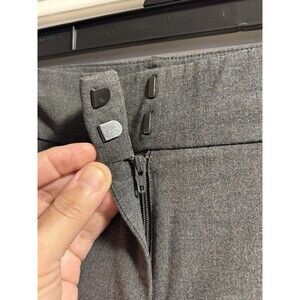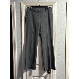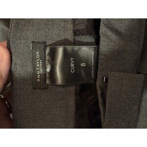 The product is a pair of Ann Taylor Factory trousers in size 8, designed for a curvy straight leg fit. These dress pants are suitable for a career or office environment, featuring a stylish gray color made from a blend of polyester, spandex, and rayon. With a regular size type, these pants are perfect for women looking for a versatile and professional wardrobe option. The straight leg style adds a sleek and polished touch to the overall look, making them a practical and fashionable choice for any work setting.