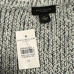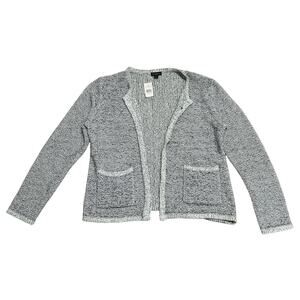 Ann Taylor Factory Tweed Pocket Open Jacket Cardigan Size M Industrial Navy Blue
