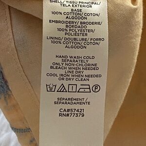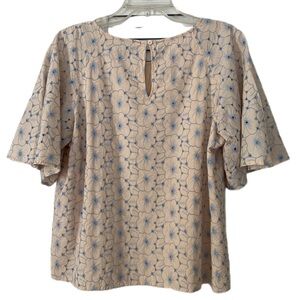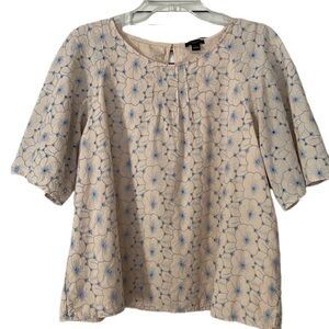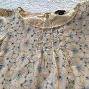Ann Taylor Factory Wide Elbow Sleeve Yellow Beige Hue Blue Embroidery Size L