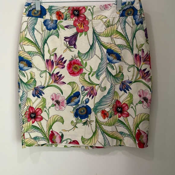 ANN TAYLOR Vibrant fun pencil skirt great fabric exciting flowers greenery all over cream base tons of colors fully lined back zipper