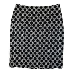 Elevate your wardrobe with this Ann Taylor Factory knee-length skirt, perfect for both business meetings and casual outings. Crafted from a comfortable knit fabric, this black pencil skirt features a chic geometric pattern that adds a modern twist to a classic silhouette. Its straight fit flatters your figure, making it a versatile piece for any occasion. Whether you're heading to the office or enjoying a weekend brunch, this skirt is your go-to choice. Pre-owned and in excellent condition.