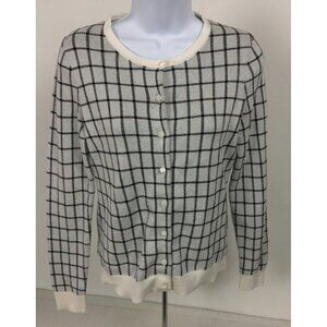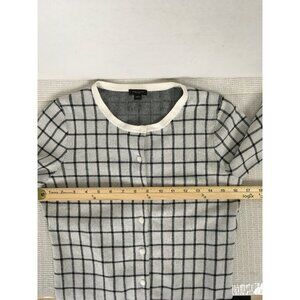 Ann Taylor Factory Womens Cardigan Sweater Size M Brown White Check Button Down