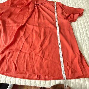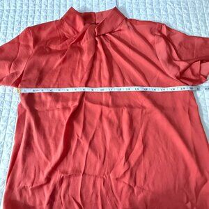 Ann Taylor Factory Womens Coral Short Sleeve Blouse With Tie Neck Size M 100% Po