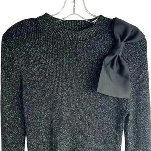 Ann Taylor Factory Women's M Black Metallic Sweater Bow Detail Pullover