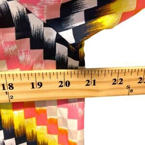 Ann Taylor Factory Womens Multicolor Blouse Splitneck Navy Trim Geometric M