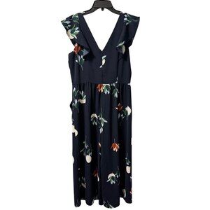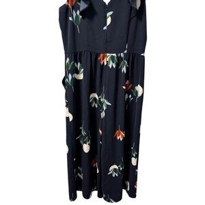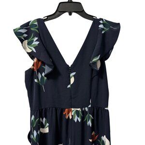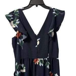 Ann Taylor Factory Womens Size 6 Sleeveless V-Neck Floral Midi Romper Blue/Ruffl
