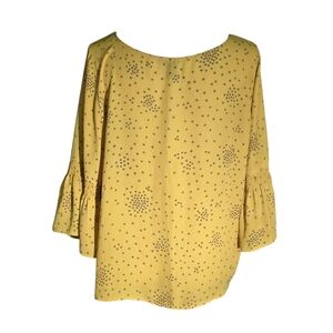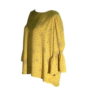 Ann Taylor Factory Yellow Polka Dot Top Bell Sleeves Women’s Size L
