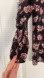 Black and plum colored floral print blouse. Ann Taylor factory. Clever button and pleated front for fluidity and style. Long sleeves with button cuffs. Size x-small. No snags or imperfections. Blouse has some sheerness and would look great styled with a dark camisole.