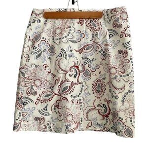 Ann Taylor Factory skirt size 12 floral red white blue MIDI.