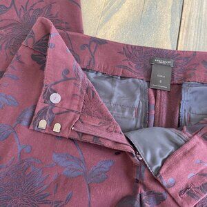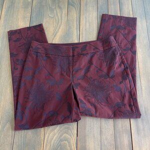 Ann Taylor FactorySignature Floral Chino Pants Stretch Maroon Curvy Size 8 (M5)